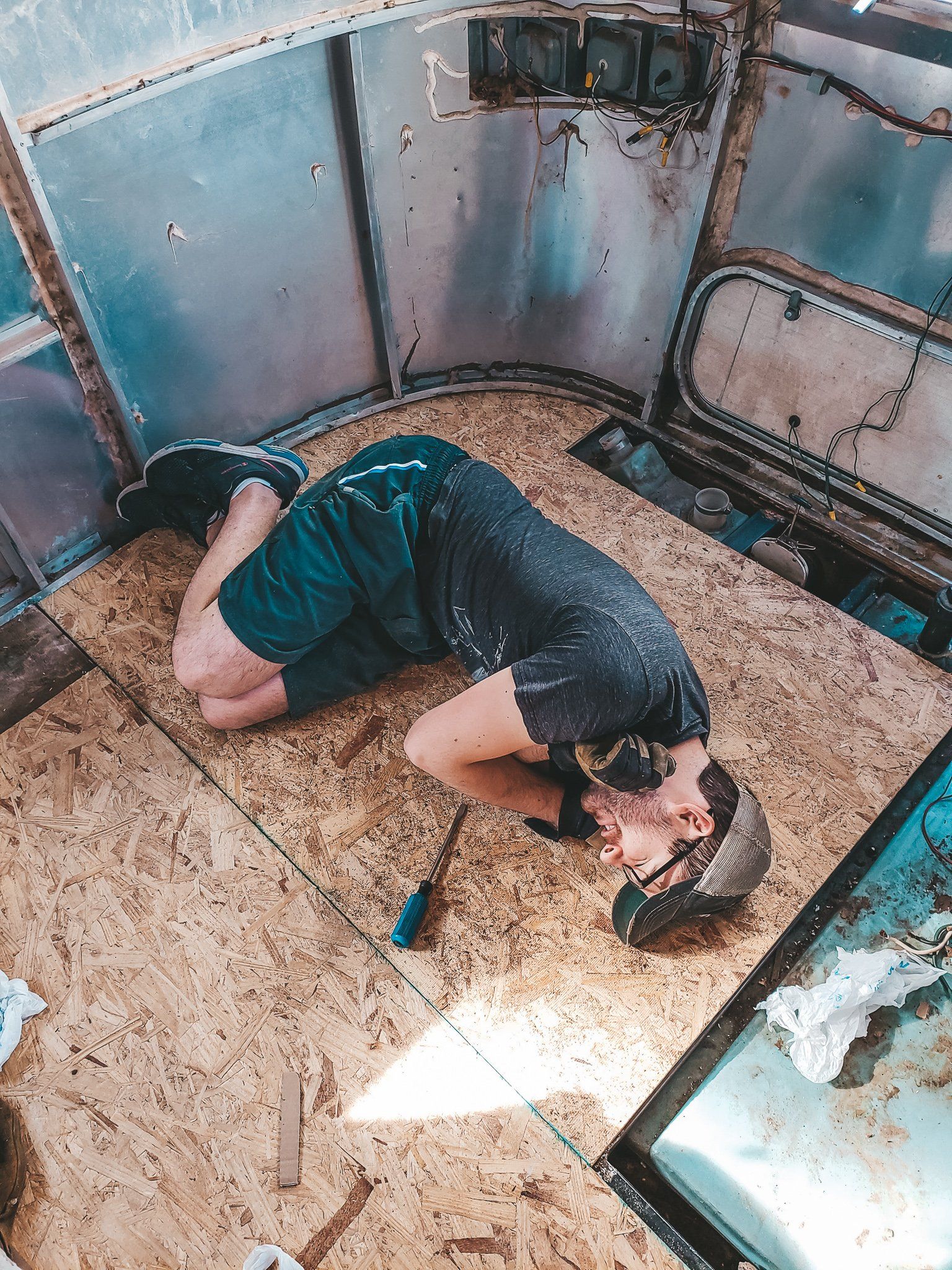 The decision to rip out all the floors wasn’t easy. While the middle sections were all in good shape the two panels in the front and back were soft. We debated just replacing the soft areas but figured if we were going to do that we might as well do the entire floor. To read our demolition story click here.